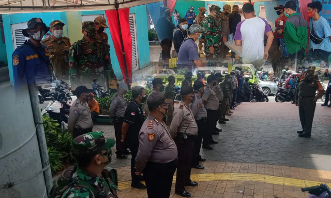 JAKARTA, JMI -- Guna menekan dan memutus mata rantai penyebaran virus covid 19 Anggota Koramil 02/Tambora Kodim 0503/JB Kelurahan Angke, Serda Sarip bersama Tiga Pilar melaksanakan Apel dalam rangka operasi yustisi disiplin ProKes (Protokol Kesehatan) bertempat di Perempatan Jembatan dua Jalan Tubagus Angke Kelurahan Angke,Kecamatan Tambora Jakarta Barat,(4/1/21).